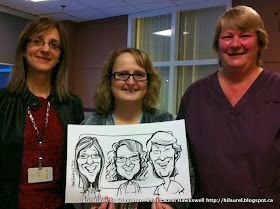 I drew some adorable people at The Royal Alexandra Hospital today! Here are just a few examples. I loved listening to the people in the 3 person caricature, chatting to each other while they were there. The 3 definitely needed to be drawn together, they have a fabulously hilarious working relationship. It makes me wish I had a “regular” job, working with the same people each day …. but then again, I do get to meet A LOT of neat people in my travels as I do caricatures here, there and everywhere!